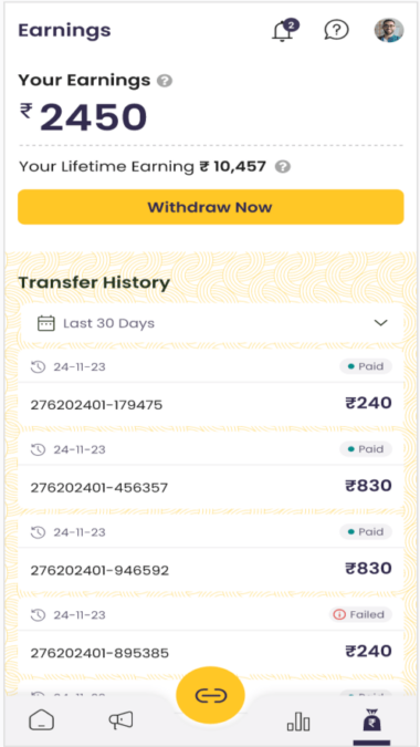 The LetsEarn App is especially handy for Indian students: it supports all major Indian merchants (Flipkart, Amazon India, Myntra, etc.), pays out in INR, and can transfer earnings directly to your bank or UPI. There’s no fee to join, and you can run it entirely from your phone. Just copy-paste links or use the share sheet (no website or blog is required). The app also provides clear tracking of clicks, pending/approved sales, and payouts, so you always see your progress.