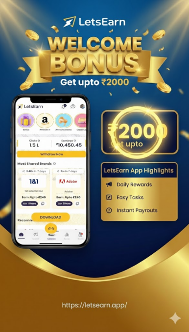 Instead of pennies per GB, imagine earning ₹50 or more from a single sale. The LetsEarn App (by Cuelinks) is a free affiliate marketing app that can do just that. Powered by Cuelinks’s affiliate network, LetsEarn connects you to thousands of top brands (Flipkart, Amazon India, Myntra, and many more) and lets you earn commissions on every sale made through your special links.