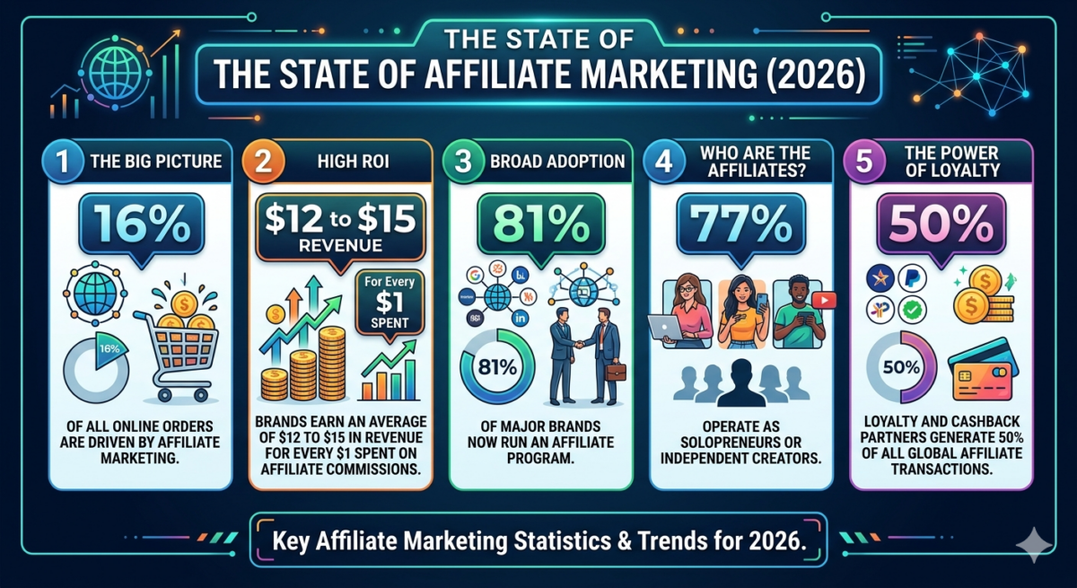 In sum, affiliate marketing’s importance is surging: with high ROI (often ~$12 revenue per $1 spent) and broad adoption, this article collates 30+ verified stats to guide publishers and advertisers in 2026.