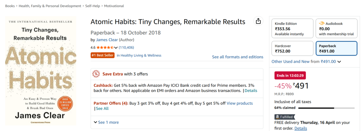 - Why it Converts: Consistent bestseller in self-help; appeals to productivity seekers.