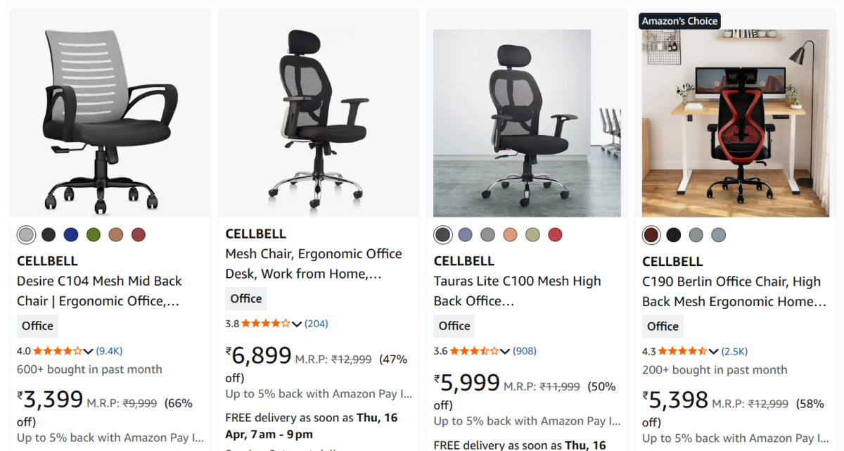 - Ergonomic Office Chair: CELLBELL mesh chair
