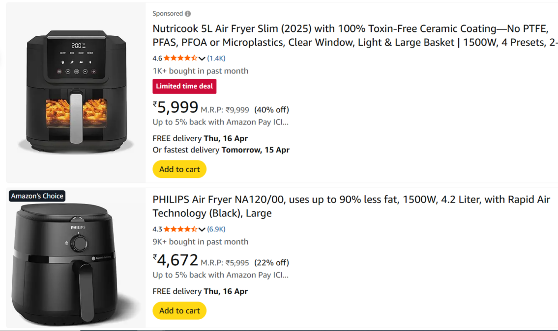 - Angles: “80% less oil, zero compromise on taste: check latest air fryer deals,” “Air fryer sale: make snacks & meals guilt-free.”