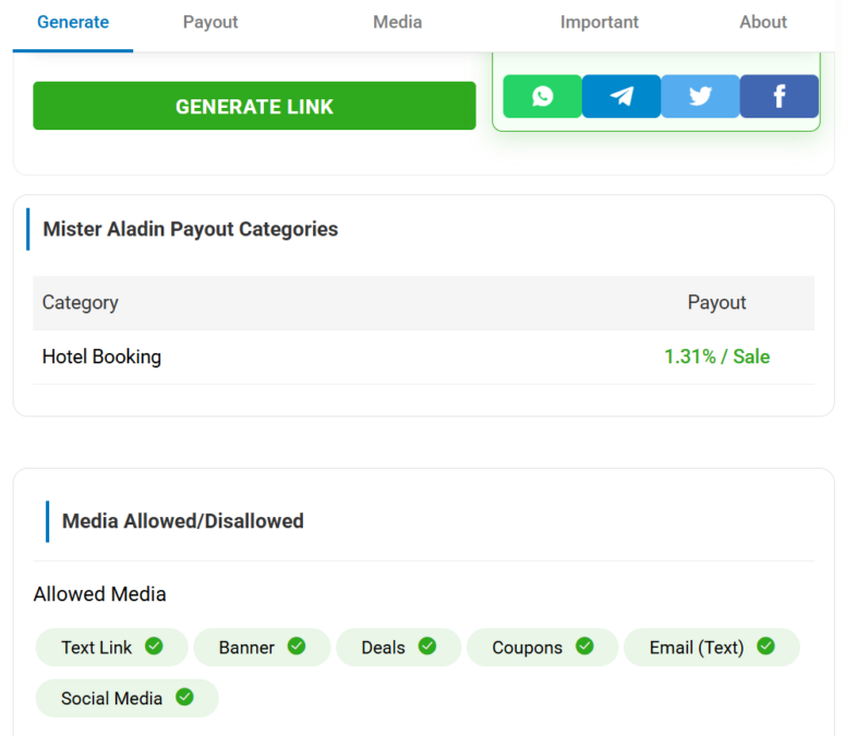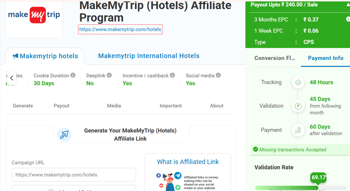 The cookie window is 1 day, so like MMT, it rewards quick conversions. It supports deep links and often allows promotion via cashback or coupon sites (with some restrictions).