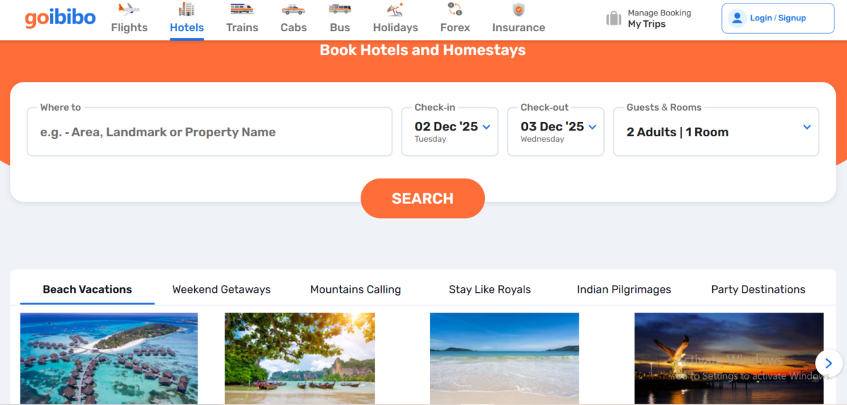 GoIbibo is another major Indian OTA (now a part of the MakeMyTrip group) that provides a wide range of travel services, from flights and hotels to buses and trains.