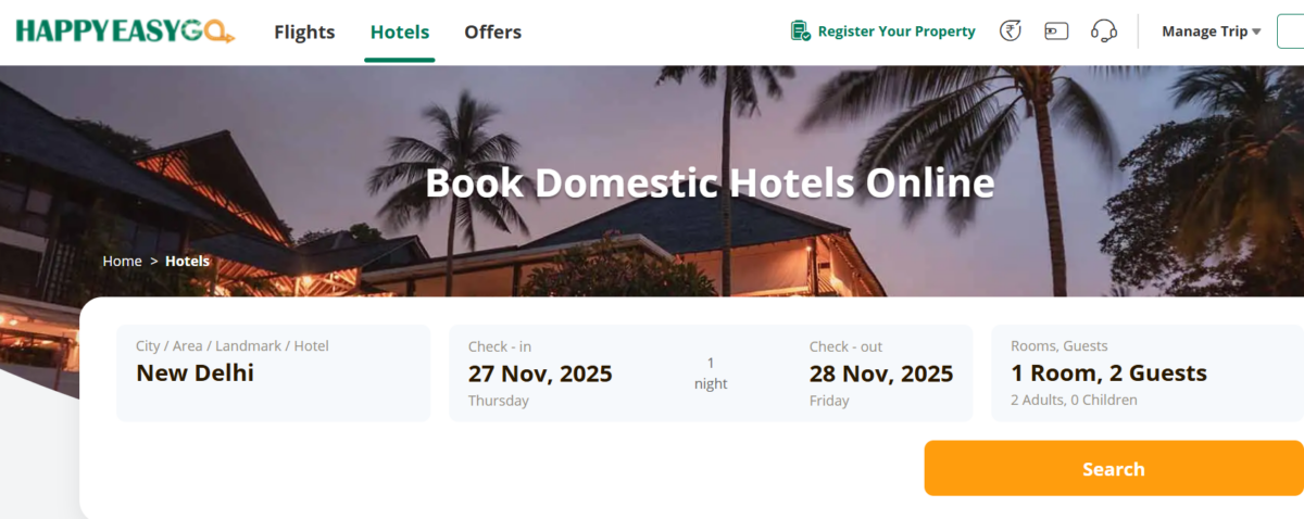 As an affiliate, you might not get a high CPA commission here, but you can still monetize flight or hotel deal content even if users are just clicking around for fares. For example, if you run a deals site or a travel blog that shares promo codes (HappyEasyGo often has promo codes for hotel discounts), you can drop your affiliate link, each visitor who goes to HappyEasyGo through it will earn you ₹0.15 (Dynamic-CPC), whether or not they book.