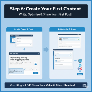 With your blog set up and customized, it’s time to create content! Start by adding a couple of pages like “About” and “Contact” (via Pages → Add New). Then, write your first blog post. Under Posts → Add New, add a catchy title, content, and images. Use categories and tags to organize your posts. Publish when ready.