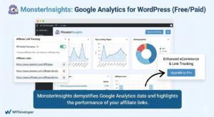 In short, MonsterInsights (free core, premium upgrades) demystifies the Google Analytics data and highlights the performance of your affiliate links, helping you focus on high-converting content.