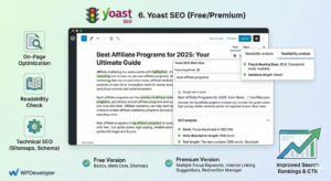 The free version covers all basics, and Premium adds features like multiple focus keywords and internal linking suggestions. Good SEO is the backbone of affiliate traffic, and Yoast makes it easy even for beginners to implement best practices.