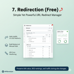 Redirection also provides logs of 404 errors and redirect stats, helping you spot outdated affiliate links and fix them promptly. This plugin is especially useful during site migrations or affiliate network changes: it quietly preserves link value behind the scenes.